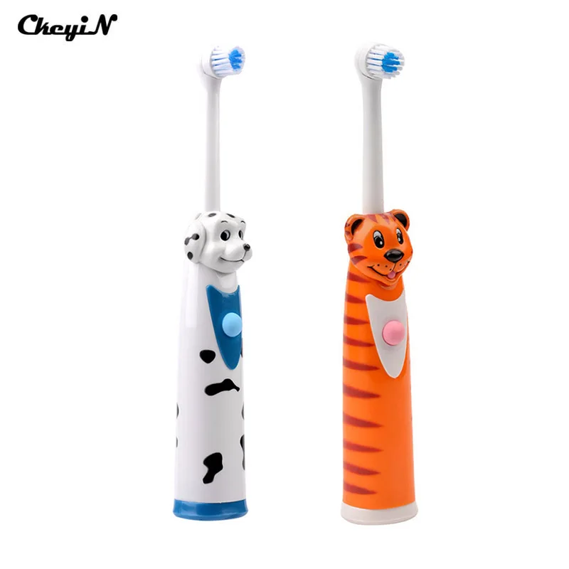 Cheap CkeyiN 2Pcs Battery Operated Electric Toothbrush+4 Brush Heads Sonic Revolving Tooth Brush Automatic Rotary Kids Toothbrushes offers